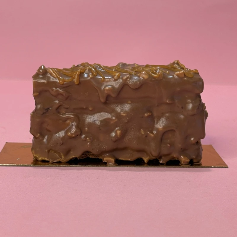 Шоколадный брауни, нежный мусс, хрустящая прослойка из карамели с арахисом под слоем молочного шоколада